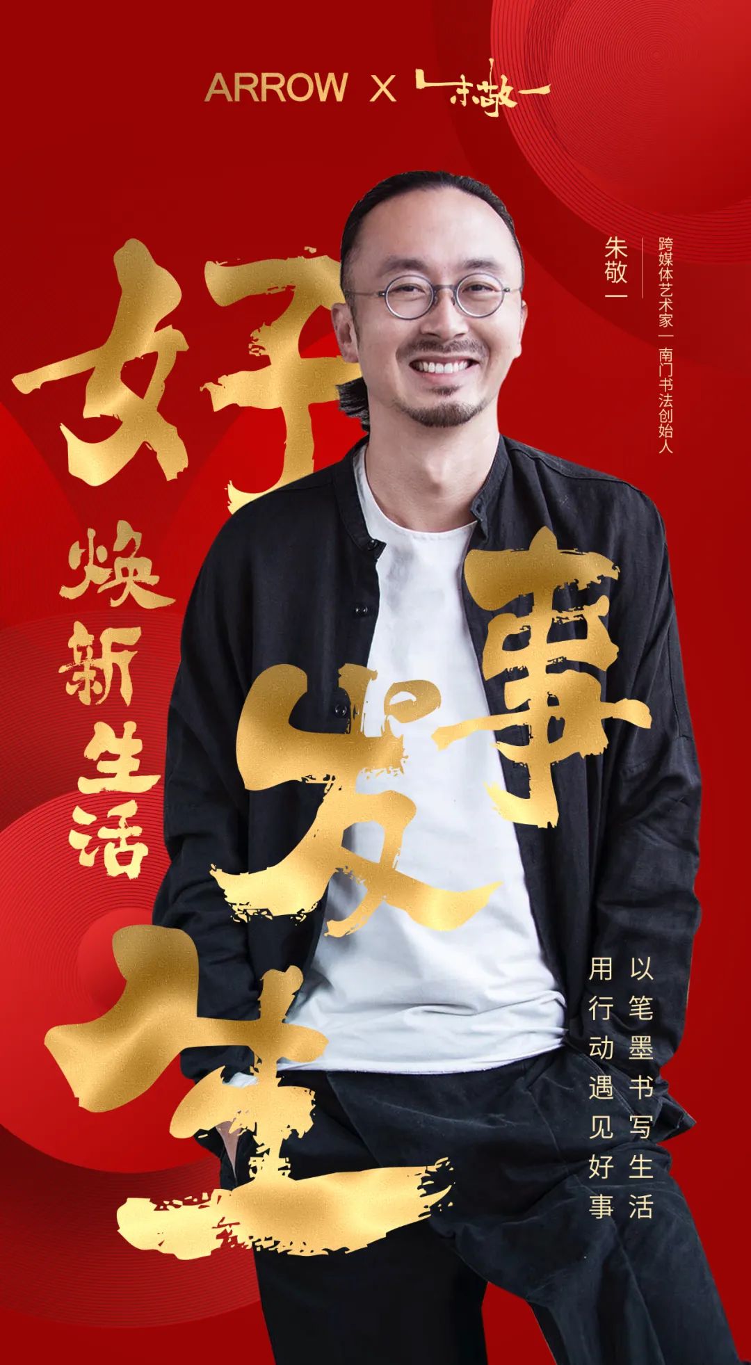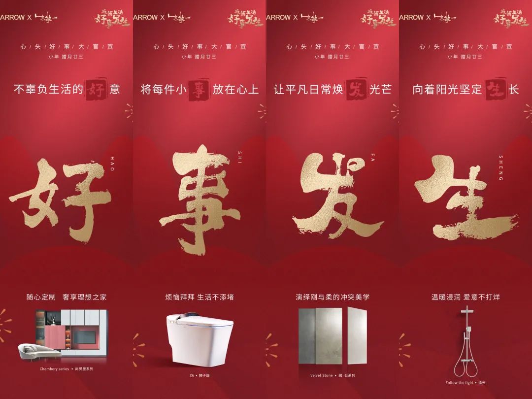 搭载新年气氛,人生就是搏中国区家居选择适配度极高的创意国潮书法艺术家朱敬一合作,并在官微宣布系列海报@朱敬一。经典大气的中国红,搭配华美绚烂的鎏金字体,与朱先生谦和明亮的笑容一起向各人转达品牌的优美祝福。设计感满满的海报一经宣布就吸引了大批粉丝驻足,为即将上线的ID视频积贮了一波流量势能。